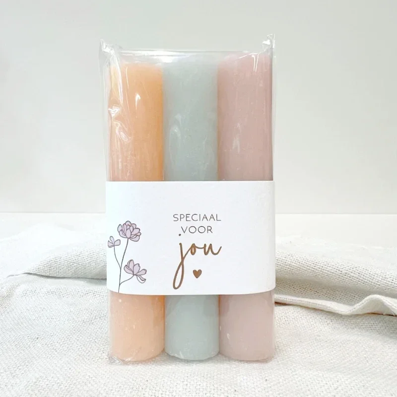 Giftsetje met 3 kaarsen. Een lief en makkelijk cadeautje!