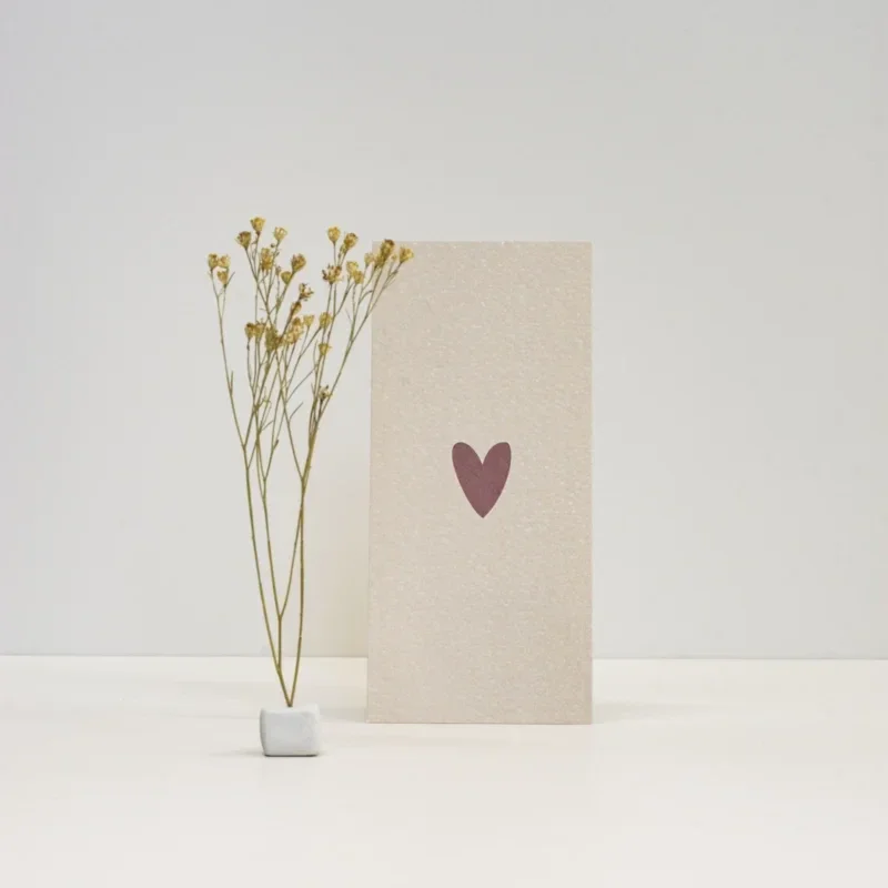 Less is more: een droogbloemetje in een klei-standaard verpakt in een lief geschenkdoosje. Het kaartje is aan één kant blanco, waardoor er ruimte is voor een persoonlijke tekst. Een bijzonder kleinigheidje om cadeau te geven!